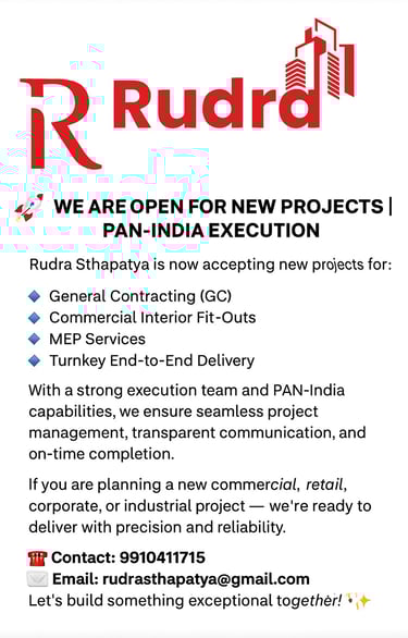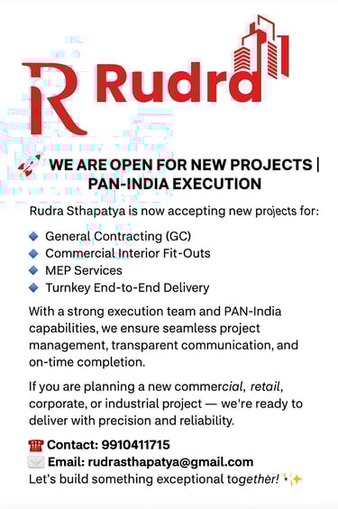Rudra Sthapatya is a professionally managed contracting firm delivering high-quality turnkey, general contracting, interior fit-out, and MEP solutions.